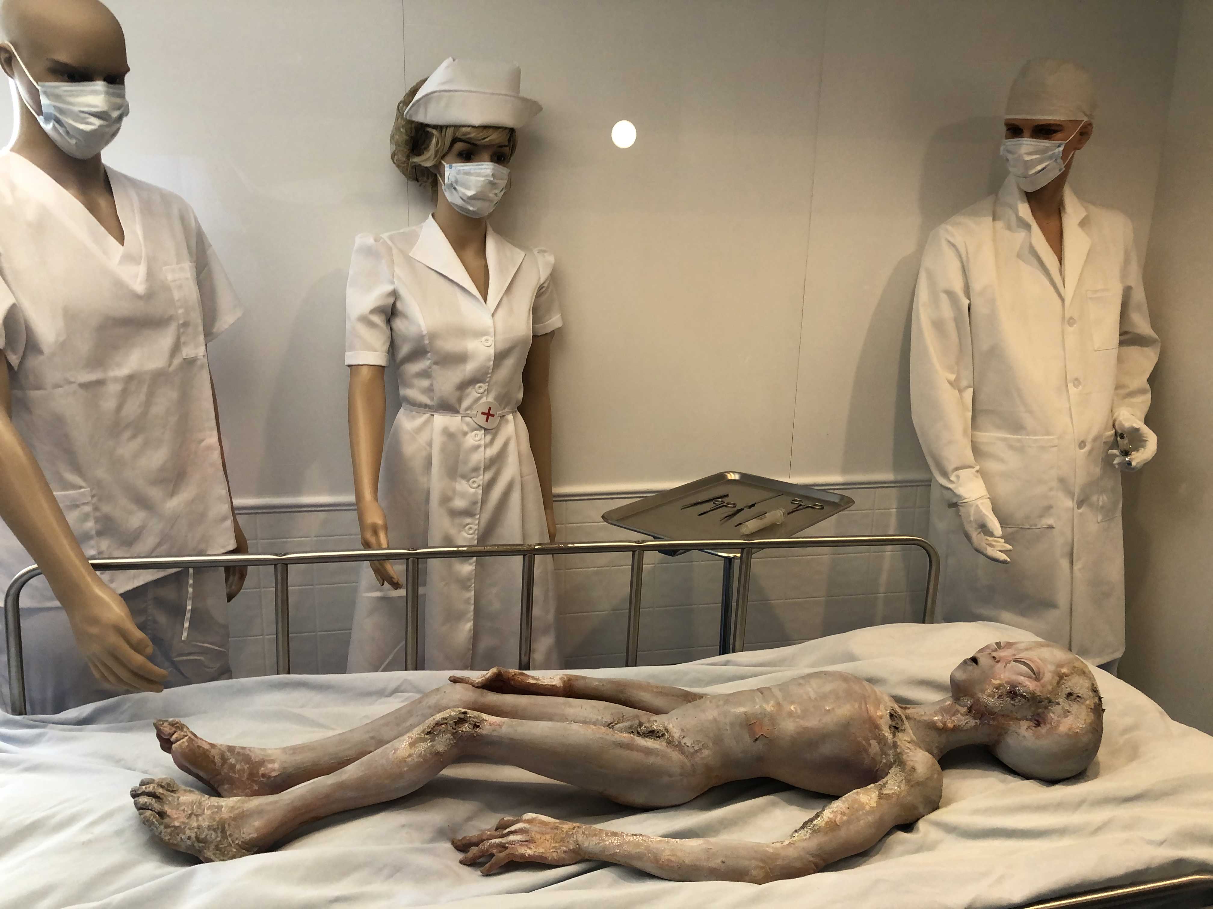 박물관 한 켠을 가다보면 1995년 공개되어 당시 큰 관심을 받았던 레이 산틸리 (Ray Santilli)의 외계인 해부 (Alien Autopsy) 영상를 형상화한 조형물이 전시되어있다. 1947년 로스웰 사건 후 미군당국 외계인을 해부하는 영상을 레이 산틸리라는 뮤지션이 공개했는데 어떻게 구했다는 출처는 구체적으로 밝히지 않았으나 당시 스티븐 스필버그도 이것은 조작된 영상이 아니라고 입장을 밝혔다고 한다. 하지만 결국은 이것은 조작된 영상으로 판명되었다.