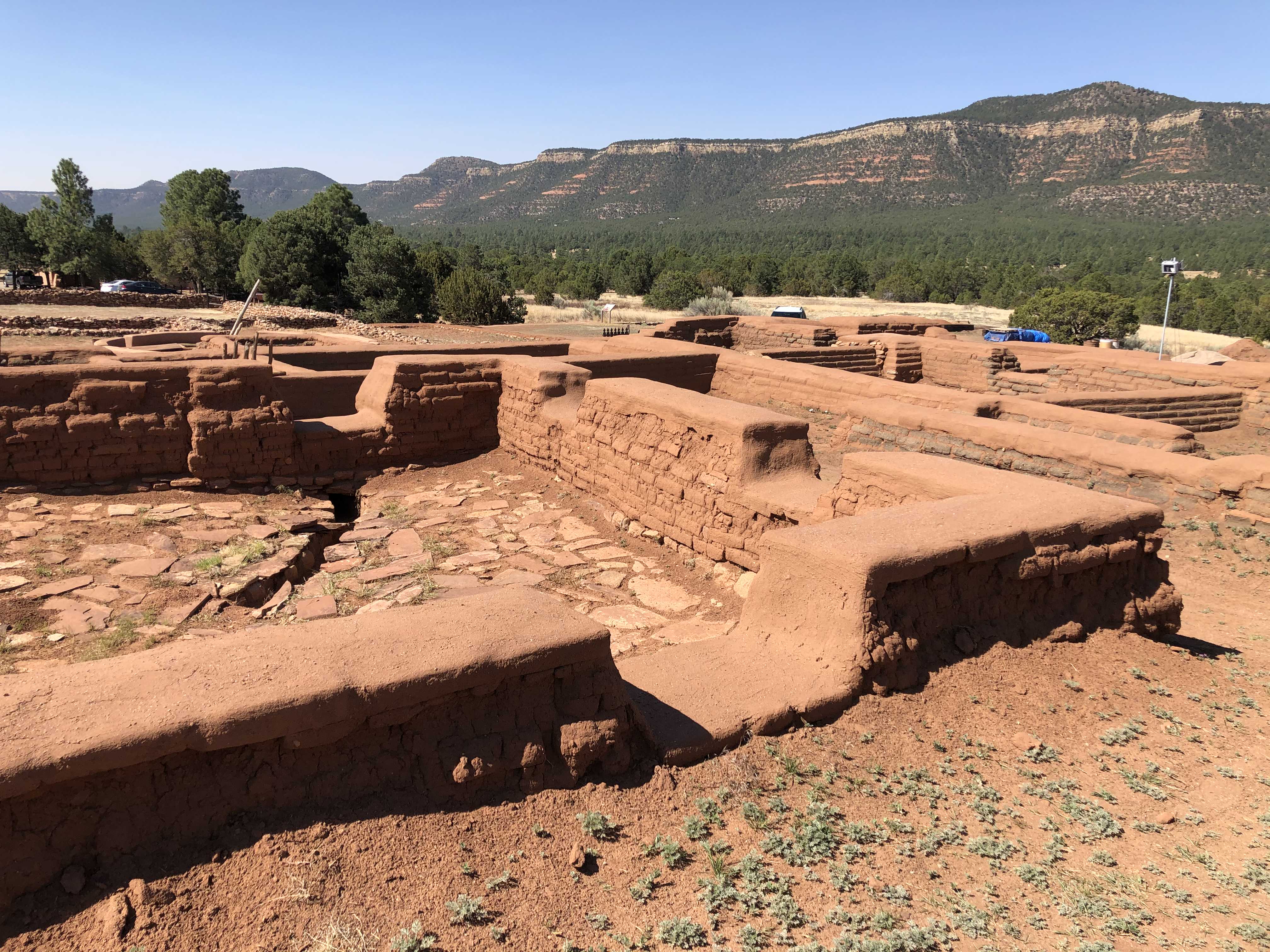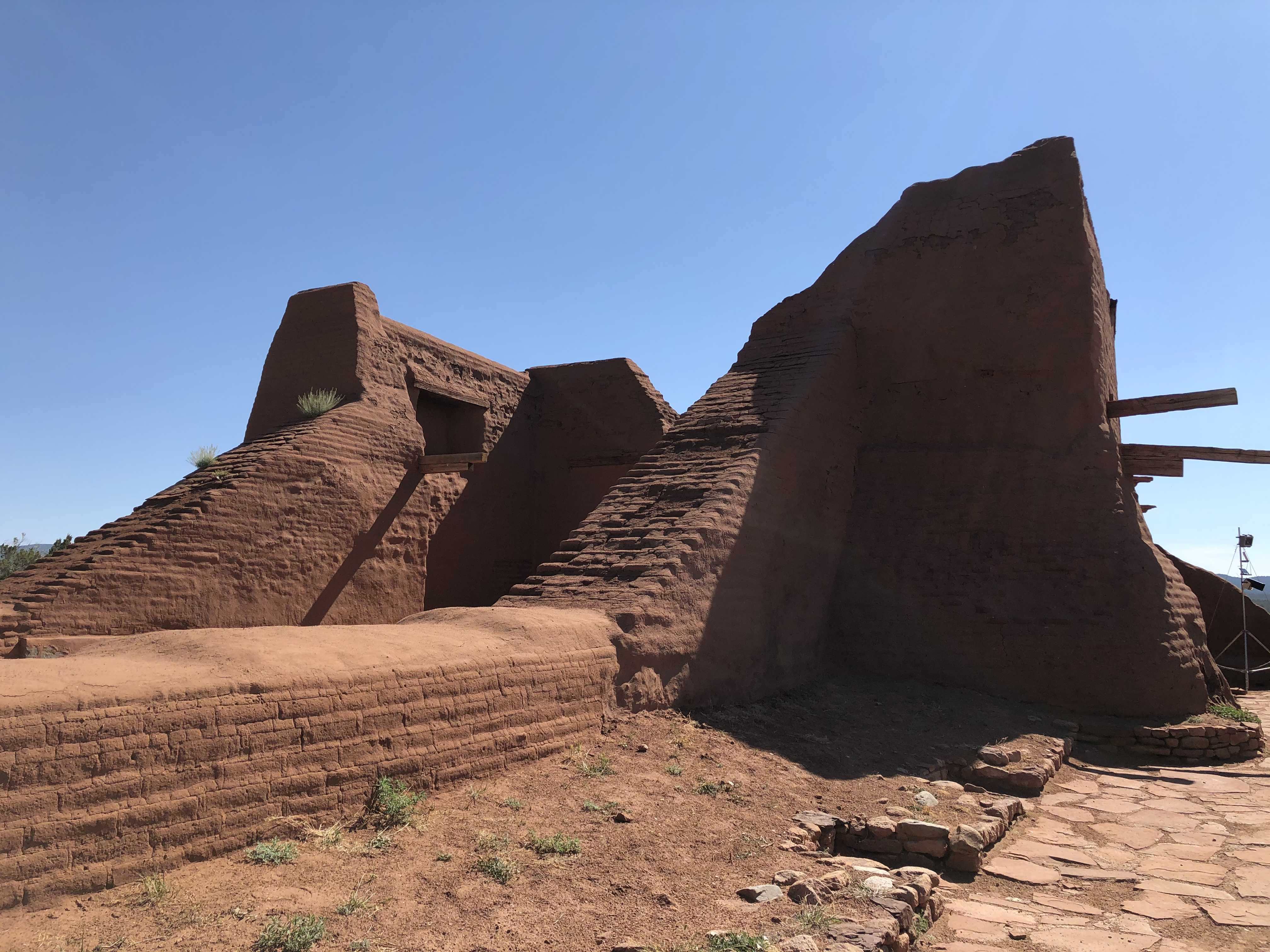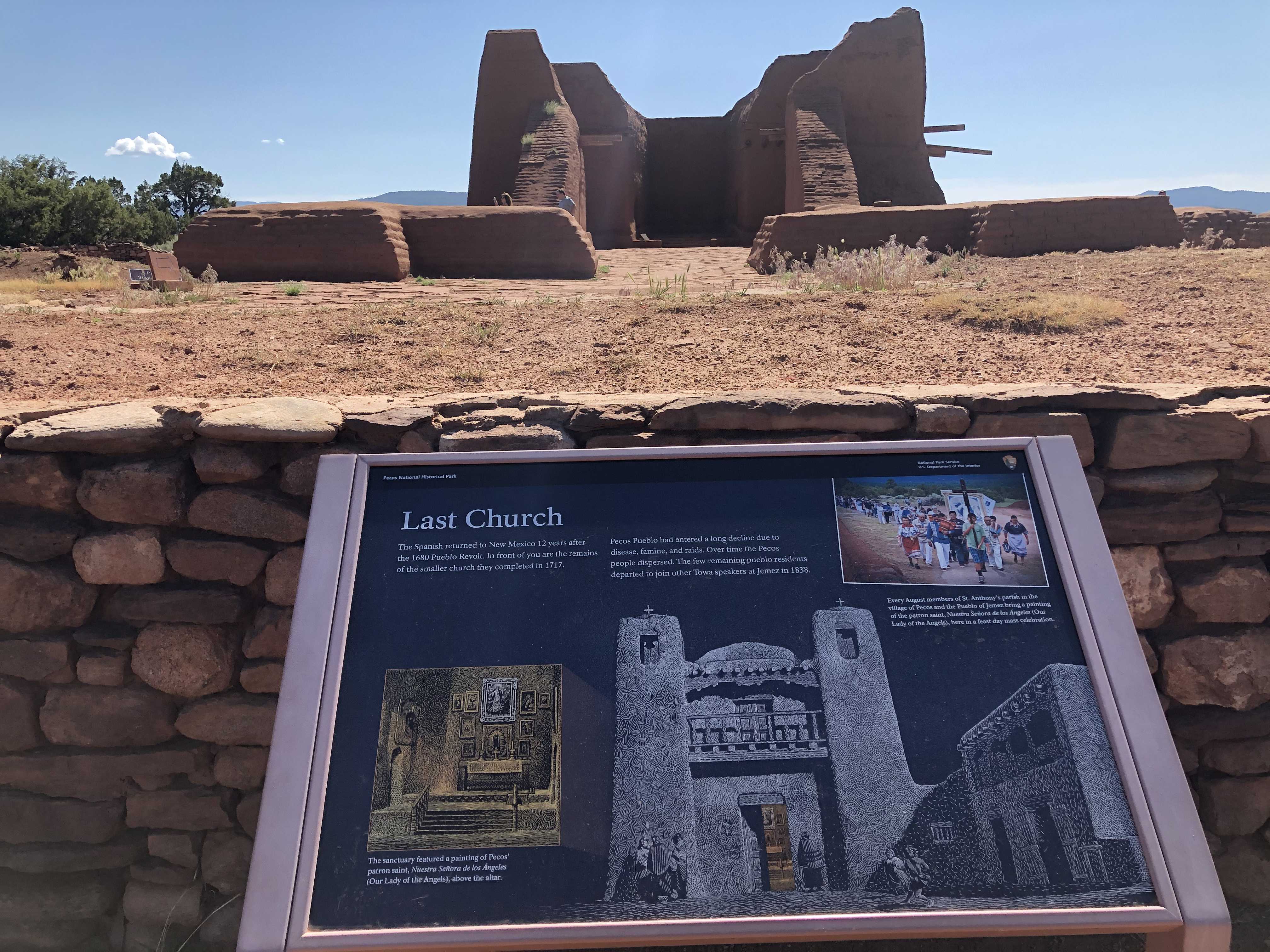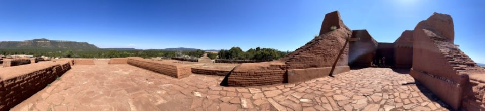 방문자센터에 있는 박물관 구경을 마치고 페코스 미션 건물 유적지가 있는 장소로 자리를 옮겼다. 유적지에는 고대 유물 발굴 및 건물 복원 작업이 한창이다. 이 남아있는 건물 터는 1692년 스페인 군대가 페코스를 재침략하여 점령한 후 다시 세운 미션 건물이 아직까지 남아있는 모습이다.