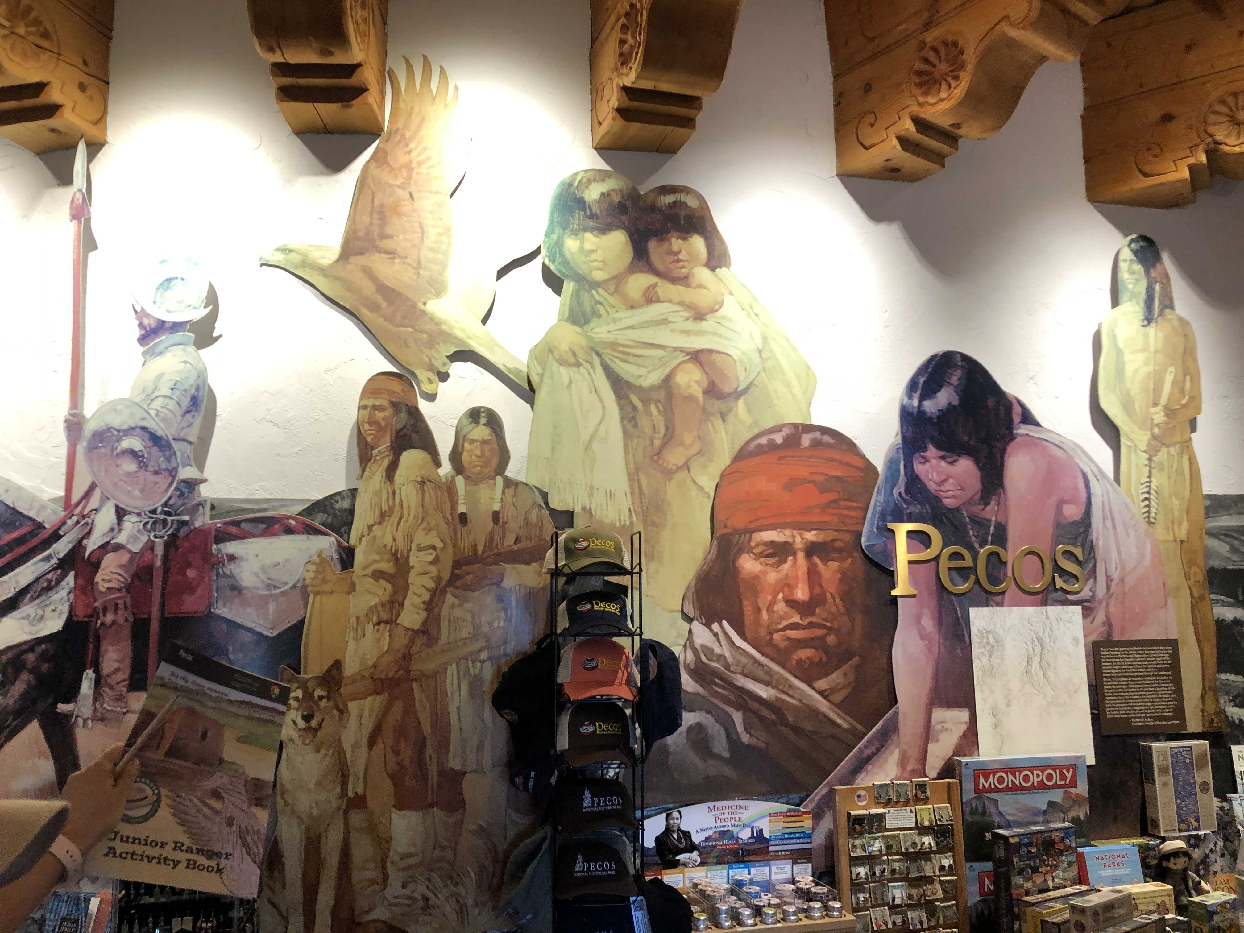 가이드분은 페코스 인디언 교회 유적지는 방문자 센터 건물에서 약 1마일 정도 언덕 오르막을 올라가면 볼 수 있으며 자동차로 갈 수 있다고 말한다. 하지만 그 곳에 가기전 방문자 센터 건물 내에서 있는 역사 박물관을 먼저 구경하고 갈 것을 강력히 추천했다. 친절한 설명에 감사를 표하고 방문자 센터 건물을 들어가 스페인 정복자와 그에 대항했던 인디언들 모습을 그린 그림들이 우리를 반긴다.