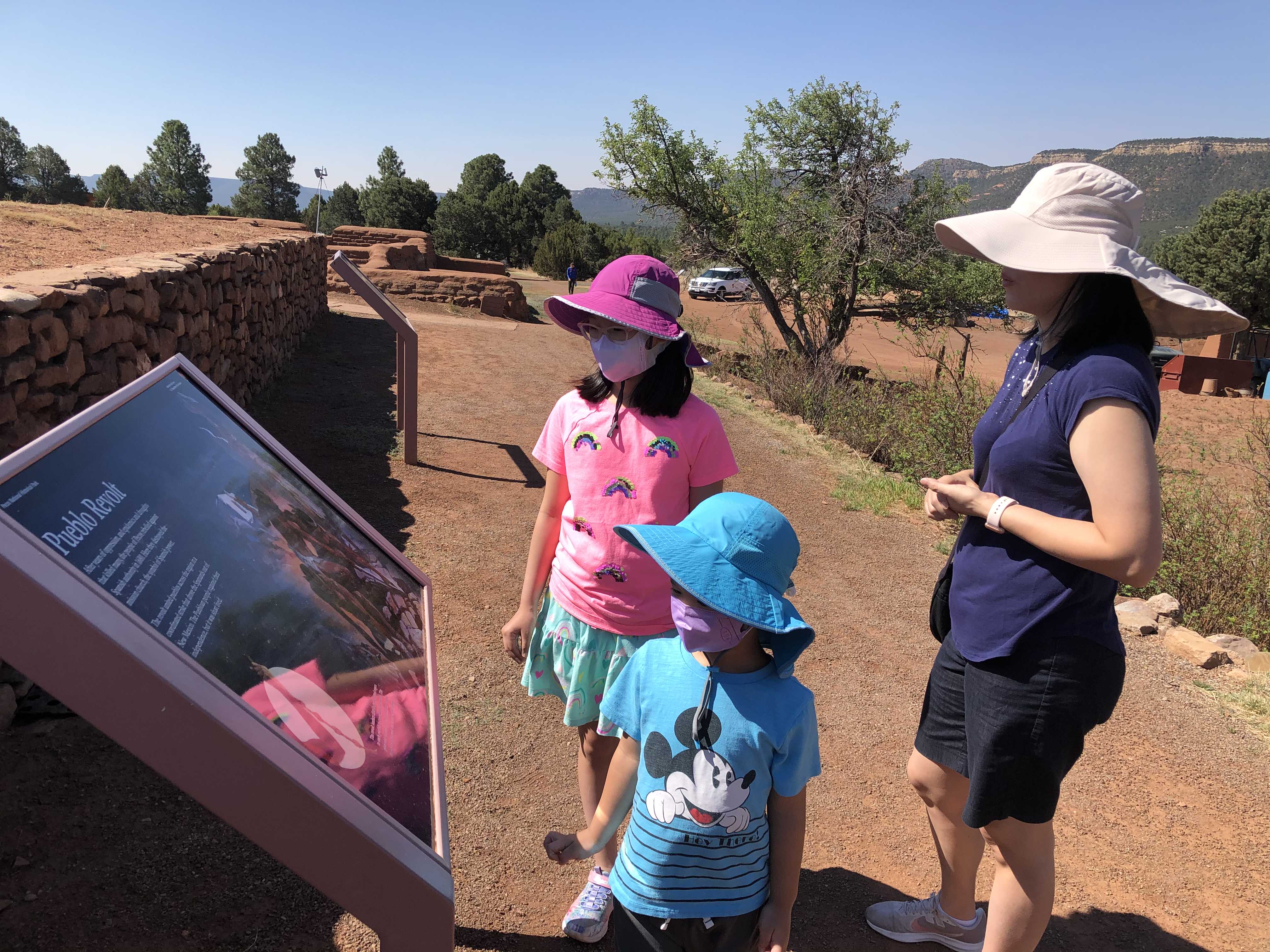 미션 건물 유적지 구경을 마치고 가족 모두와 함께 안내판을 읽어본다. 안내판에는 푸에블로 인디어의 봉기에 대한 자세한 설명이 있다. 적어도 이 순간 만큼 모든 이들이 진지한 모습으로 안내판을 일어보며 당시 상황을 이해하려 애써본다. 어린 둘째도 그 분위기를 이해했는지 조용히 그리고 나즈막히 푸에블로의 흔적이 담긴 그림을 지켜본다.