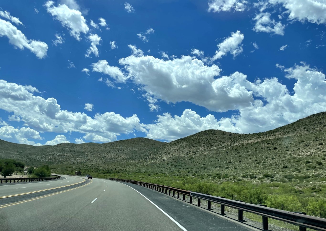오데사를 떠나 385번 고속도로를 따고 텍사스 북서쪽을 향해 올라가다가 380번 도로로 갈아 탔다. 약 3시간의 운전 후 텍사스와 뉴멕시코 주경계을 통과하였다. 언제 텍사스/뉴멕시코 주경계을 통과했는지 알지 못했는데 차량 속도 제한이 시속 75 마일에서 65마일로 바뀌고 도로 포장 상태도 약간 바뀌면서 주경계를 통과했음을 눈치 챘다. 가족들과 마치 오래된 마라톤 끝에 목표지점에 도착한 것 처럼 환호성과 더불어 팡파레를 울렸다. 헬로 뉴멕시코!!