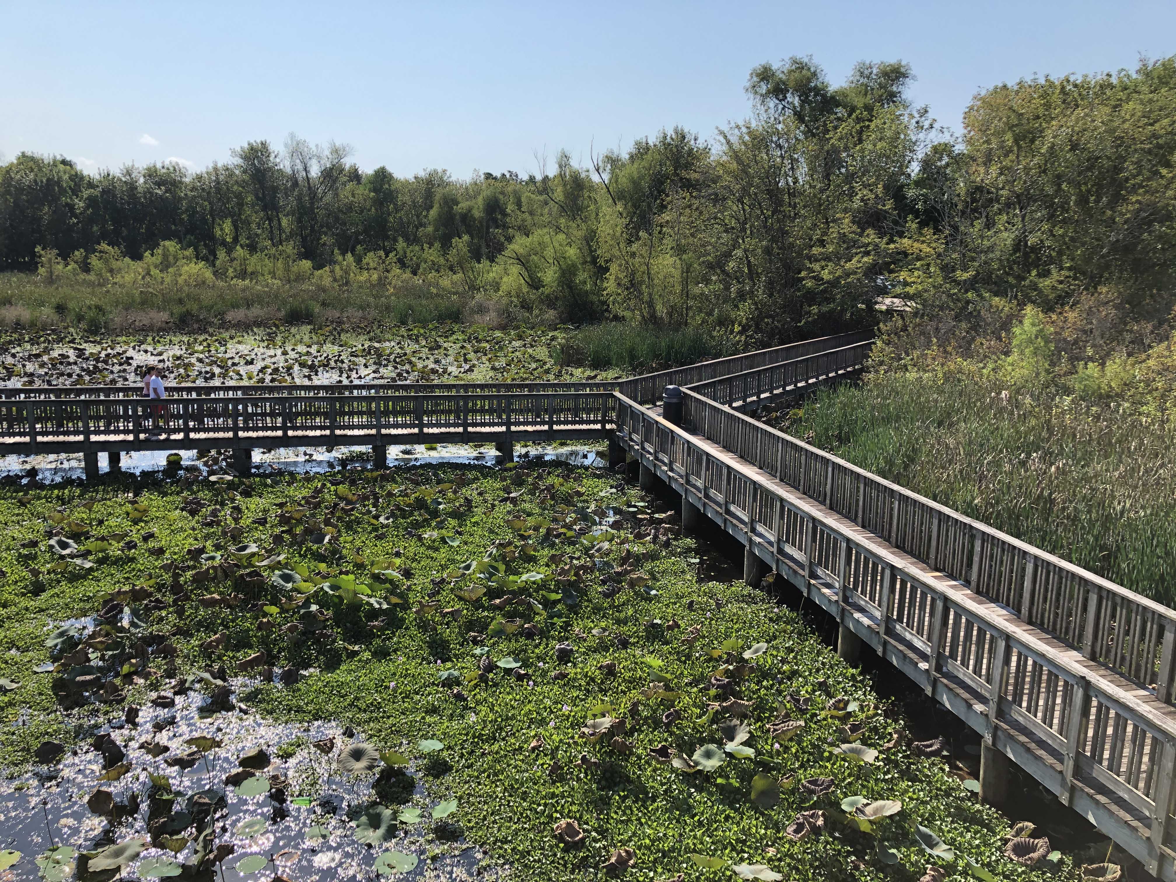 보드워크를 따라서 그 끝까지 가보니 조그마한 벤치가 양쪽 끝에 위치하고 있었다. 평상시 같으면 아이들과 같이 앉아 호숫가의 고요함을 감상했겠지만 코로나 바이러스는 벤치에 앉아 자연을 즐기는 여유마져 뺏아가 버렸다. 아이들에게 주변의 어느 것도 만지지 말고 풍경만 감상하라는 것은 너무 무리한 부탁이었을까? 아이들이 벌써부터 지루해한다. 그저 고요한 호숫가의 분위기 속에 이렇게 보드워크를 걷는 것만으로 만족해야 했다.