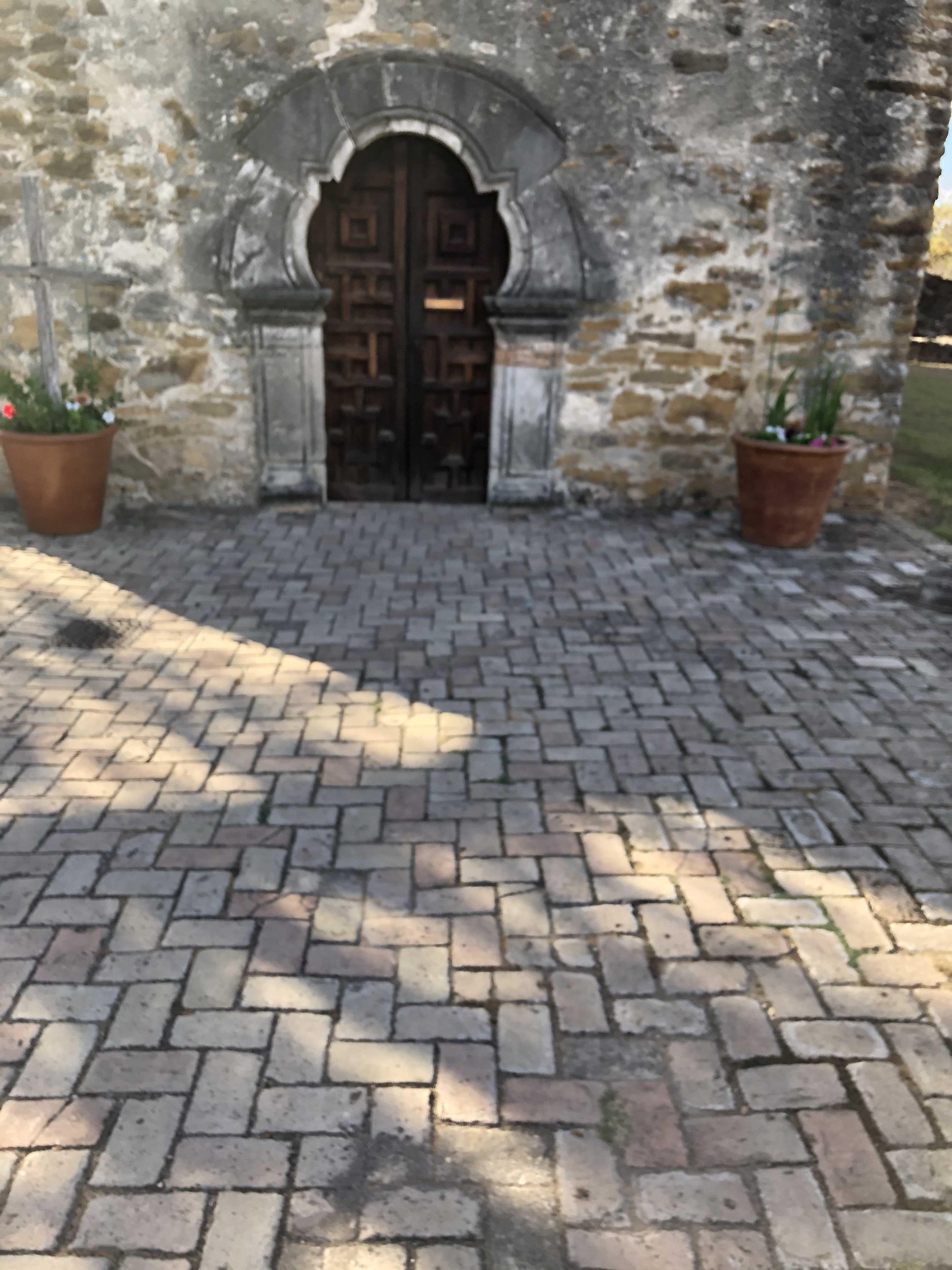 교회 건물 출입구 벽돌과 장식을 보면 다른 미션들과는 달리 보다 섬세한 조각과 장식을 엿볼 수 있다. 돌을 일일이 깎아서 출입구 주변을 장식한 것이 참 흥미롭다.