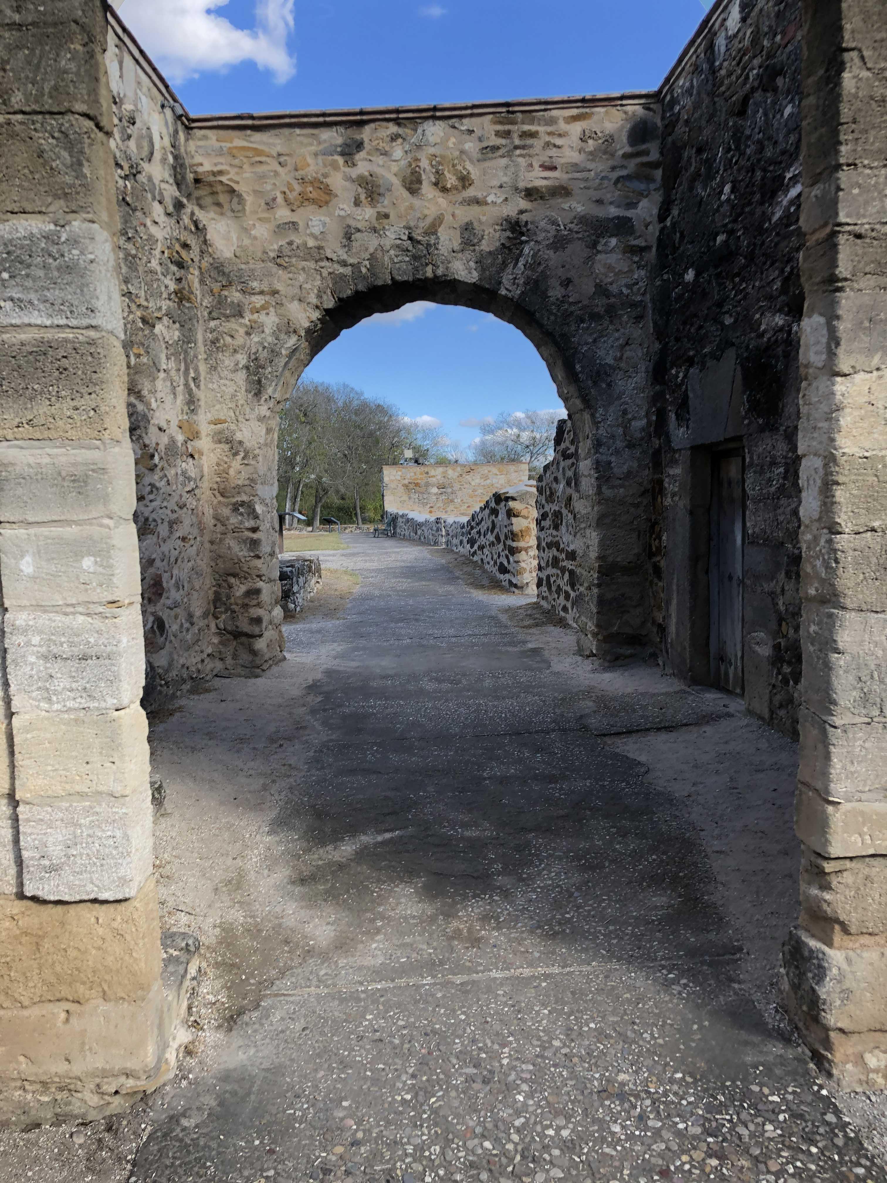 교회 건물 옆 담벼락에는 조그마한 출입문이 있는데 이에 대한 안내판이 하나 서있다. 이 출입문은 산후안 미션에 들어가기 위한 관문으로서 출입 허가증을 제시하지 않으면 외부인들은 산후안 미션으로 들어갈 수 없었다. 출입문에는 관리인 또는 위병들이 항상 출입자들과 그들이 가져온 물품을 감시했다고 한다. 농산물이 풍부한 산후안 미션에서 상업 및 교역활동이 매우 활발했었다는 증거이기도 하다. 당시 유럽에서의 흑사병에 대한 충격 이후 이 곳에서는 아주 까다로운 검역활동이 이루어졌다고도 한다. 코로나 바이러스의 여파가 항상 체감되는 요즘... 이 출입문에서의 검역은 단지 역사 속의 이야기만은 아닐 것이다.