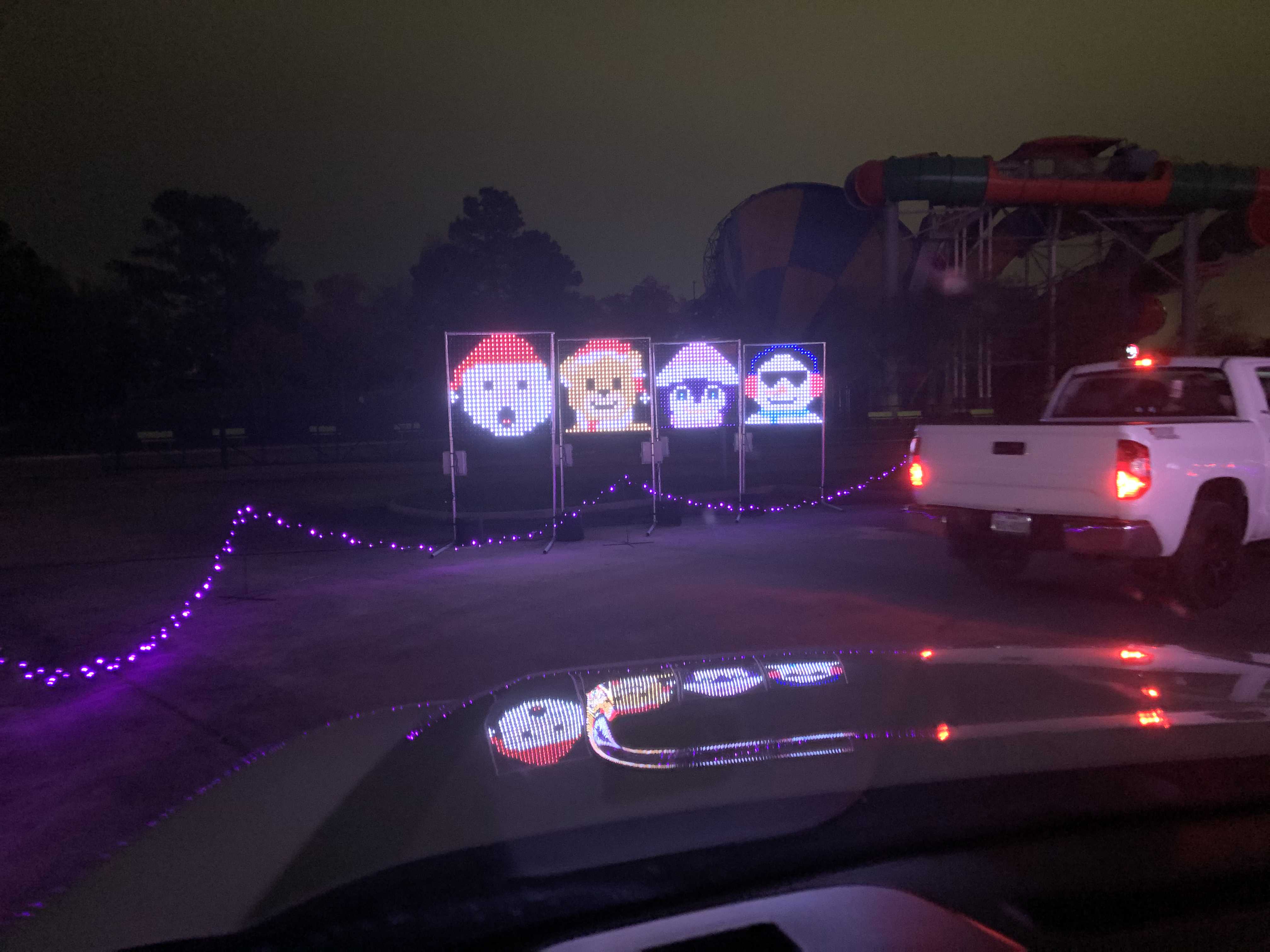 라이트 쇼는 생각보다 길었다. 약 20 ~ 25여분을 자동차로 천천히 움직이며 즐길 수 있었다. 자동차 안에 있으니 사회적 거리두기가 자동으로 실현되고 심적으로도 보다 자유스러웠다.