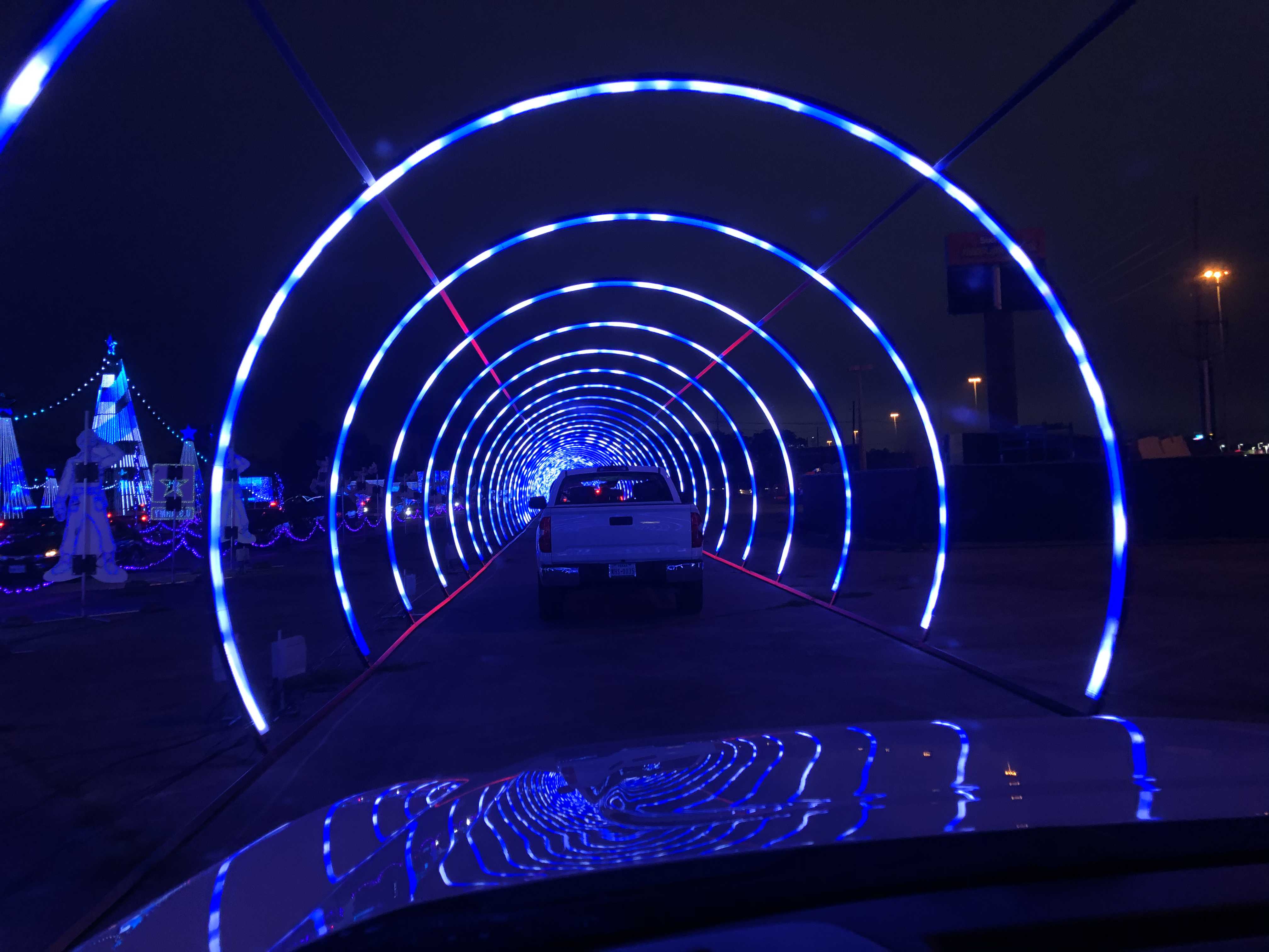 드디어 라이트 쇼의 피날레를 장식하는 터널 같은 곳에 다다른다. 흘러가는 불빛에 마치 우리가 터널 끝으로 빨려 들어가는 듯한 느낌이 든다.