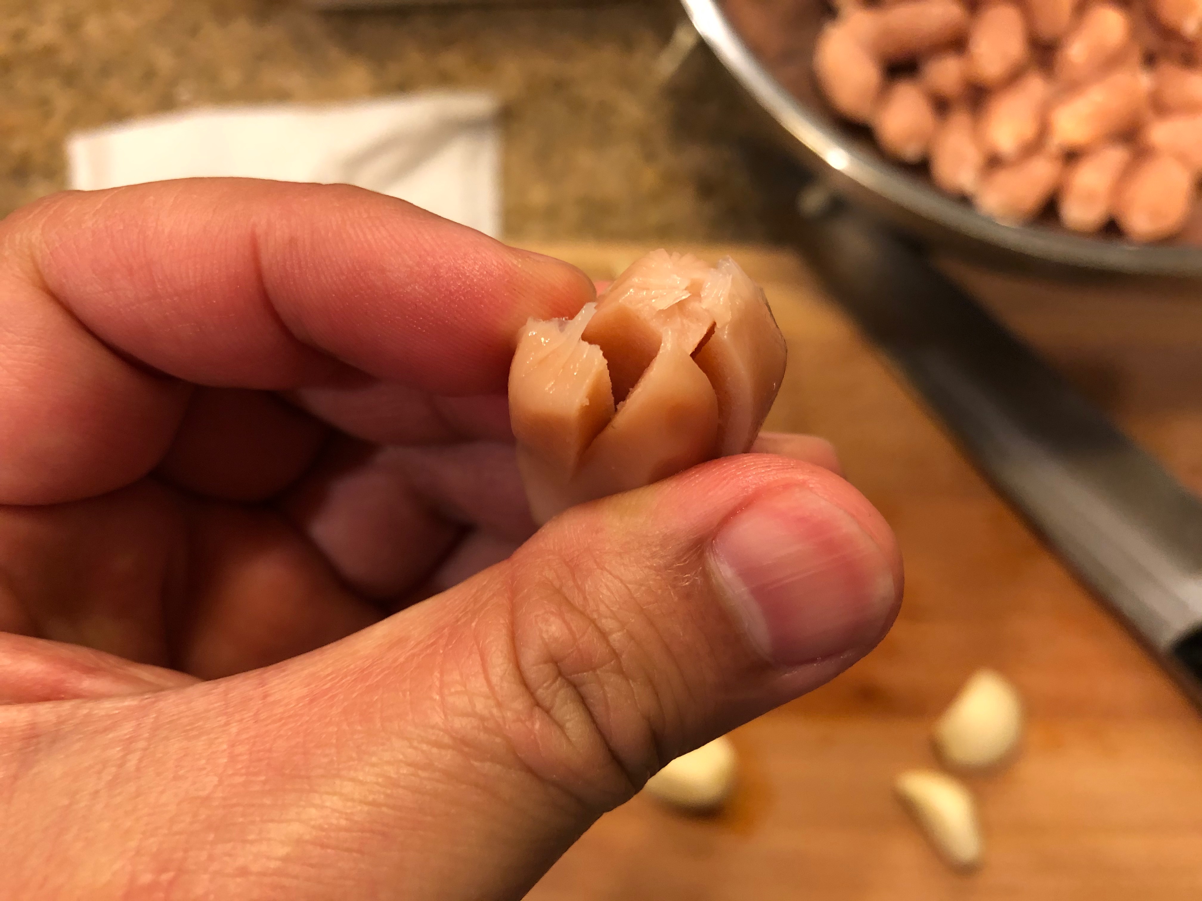 우선 비엔나소시지를 깨끗한 물로 2 ~ 3번 헹궈준 다음 십자로 칼집을 내준다(소시지 길이의 절반 정도). 이렇게 하면 나중에 주꾸미 같은 이쁜 소시지 모양을 만들 수 있다. 시간이 되면 8자로 칼집을 내주고 없으면 그냥 넣어도 괜찮다.