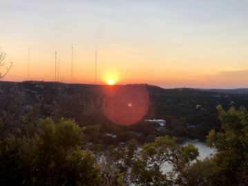 오스틴으로 돌아와서 호텔방에서 피자를 시켜서 먹고 아내가 말하는 오스틴 시에 있는 산 마운트 보넬 (Mount Bonnell) 정상으로 가서 석양을 감상했다. 말이 산이지 한국으로 치면 언덕고개 정도라 할 수 있는 곳이다. 하지만 텍사스 그 넓은 평지에 이렇게 높은 언덕 고개는 산으로도 불릴 수 있겠다 싶었다. 주차 공간을 찾을 수 없을 정도로 많은 사람들이 석양을 보기 위해 방문했는데, 절반 이상의 사람들이 마스크를 쓰지 않는 붐비는 정상에서 가족들과 머무는 것이 약간 부담스러웠다. 그나마 석양 경치와 어우러진 호숫가의 풍경은 텍사스에서 한동한 경험해보지 못했던 뷰를 가져다 주었다. 가족들과 셑카 몇컷을 찍고 황급히 하산, 호텔로 돌아왔다.