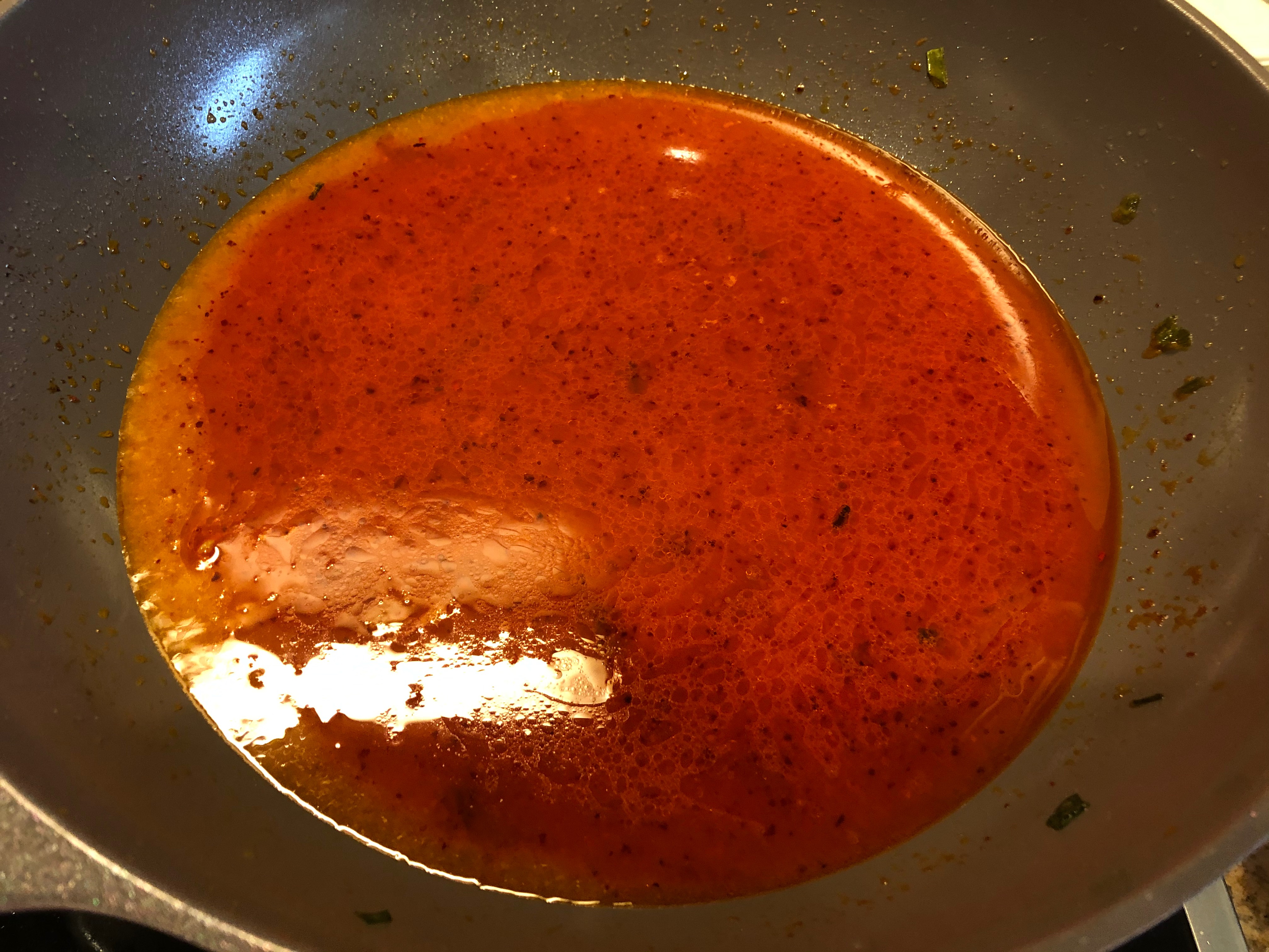 기름이 끓어오르면 된장, 고추장과 간마늘을 넣고 살살 튀기듯이 볶아준다. 제육볶음 소스향이 스멀스멀 올라오기 시작한다.